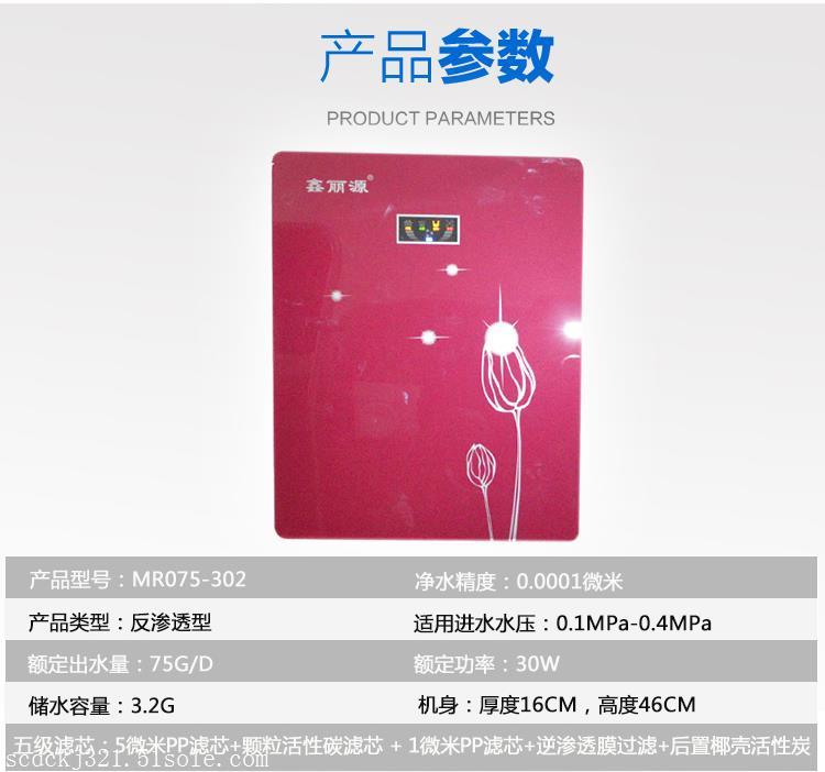 成都鼎宸环保科技有限公司出售的鑫丽源XR75-302kitchen家用净水器使用全新的五级过滤系统,并配有进口的反渗透ro膜,可确保过滤后的水纯度达到95%以上。全包式主体确保了设备中滤芯的安全。同时,净水器本身更时尚,相符现代都市人的审美观,净水器配置LED电子显示屏,使用户可以更直观地见到和操作净水器。平常城市用水状况下使用寿命长.1-4级滤芯可使用半年以上,而5级进口反渗透ro膜在使用前可使用1-2年更换,有效地缩减了用户在耗材上的投资。